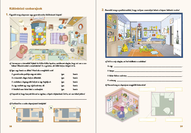 A feladatok magukkal ragadják a gyerekeket. A vidám, gyermekközeli illusztrációk szintén a jókedvű munkavégzés örömét erősítik.